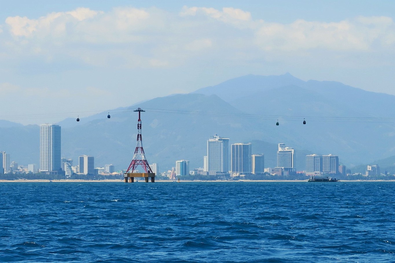 ![]() 28 Nha Trang View of Nha Trang from the ocean - the cable car leads tourists over to the Vinpearl theme park and has become quite a landmark of the city. |