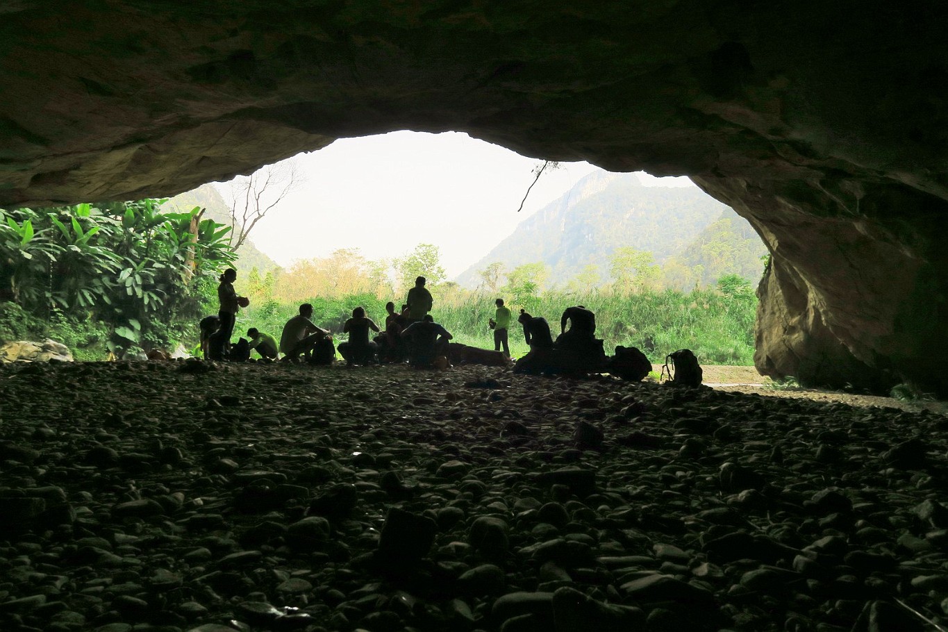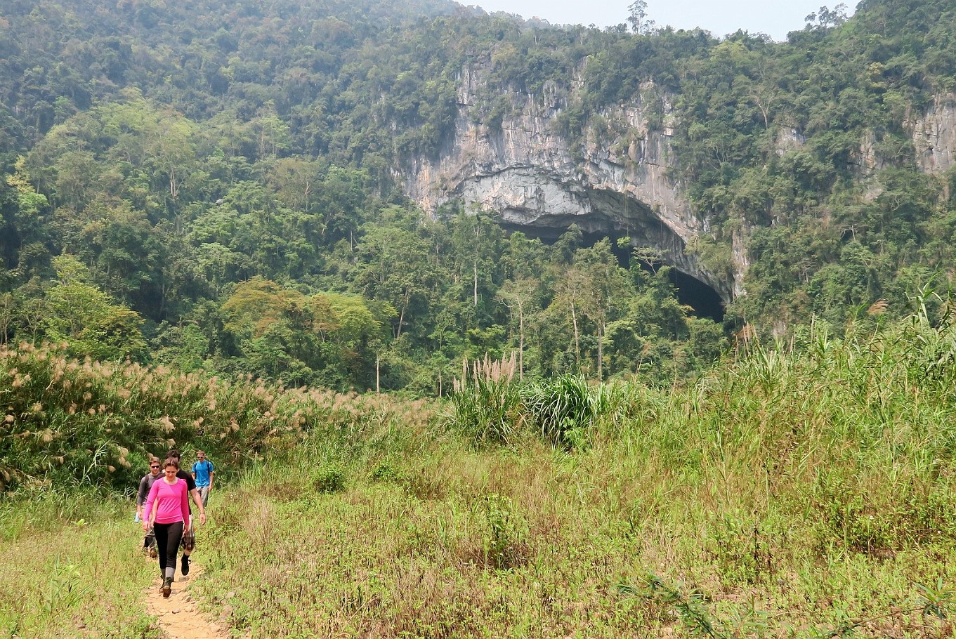 ![]() 65 On the way back All to soon the time is up and we had to head back towards Phong Nha Village. In the back, the main entrance to Hang En. |