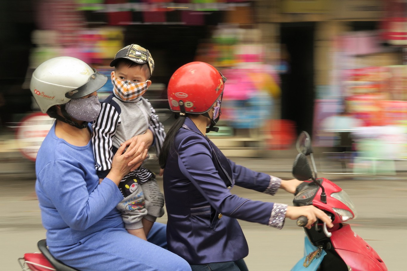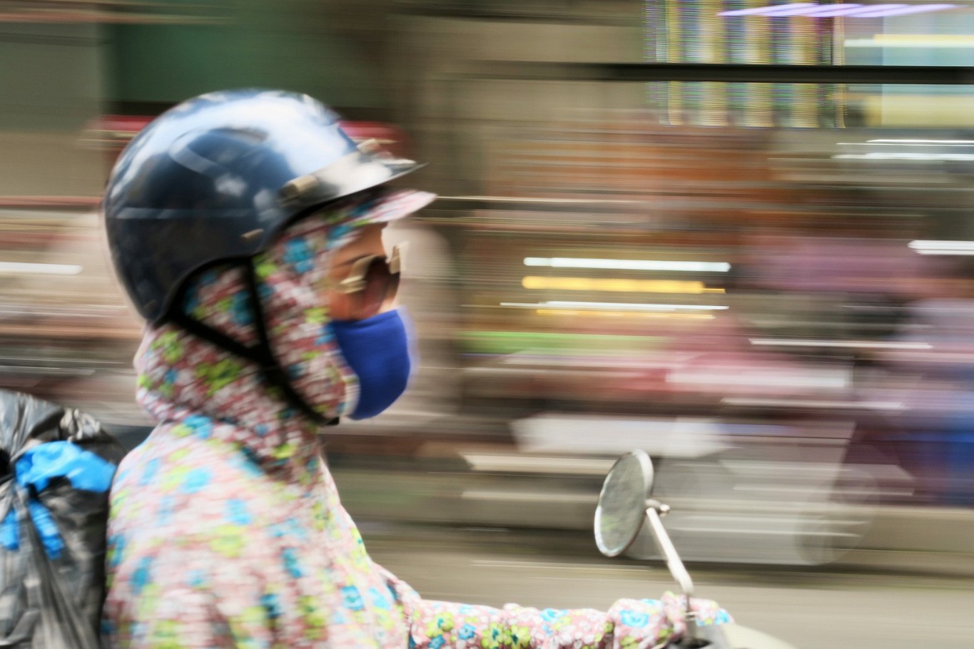 ![]() 66 Hanoi Street Life 1 The quintessential Vietnamese motorbike girl - and the all are motorbike girls: Hoodie with a girly pattern and mask, more to protect from the sun than from the bad air. |