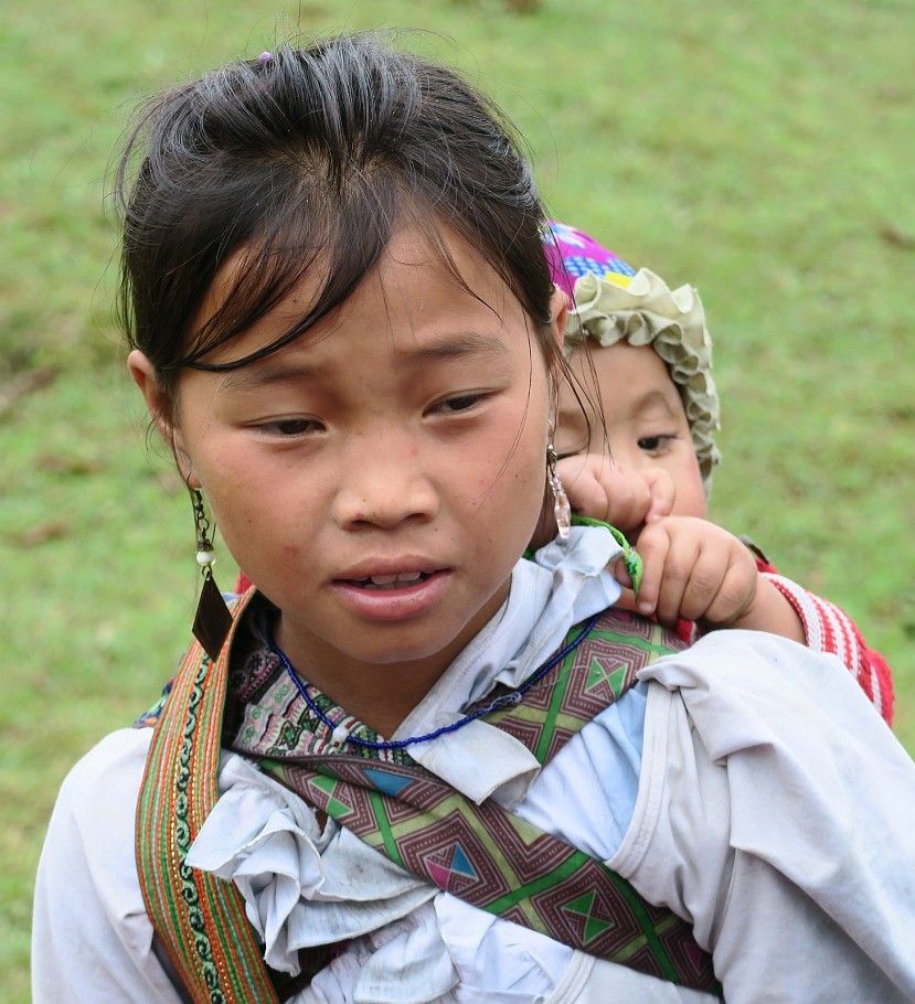 ![]() 82 H'mong Woman H'mong are one of several minority tribes living in the area around Sapa. The women are excellent business people and are to be met in Sapa itself and on the many trails in the hills, never at a loss to sell you something. |