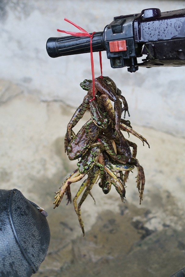 ![]() 80 Sapa Street Life Possibly a a legacy of the French days, but the Vietnamese certainly love their frogs. As a snack. So if you stumble over one on Sapas country roads, don't let it hop away and make sure to tie it up for a later meal! |